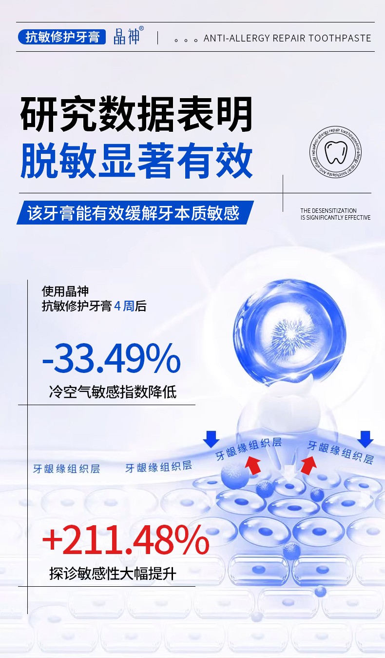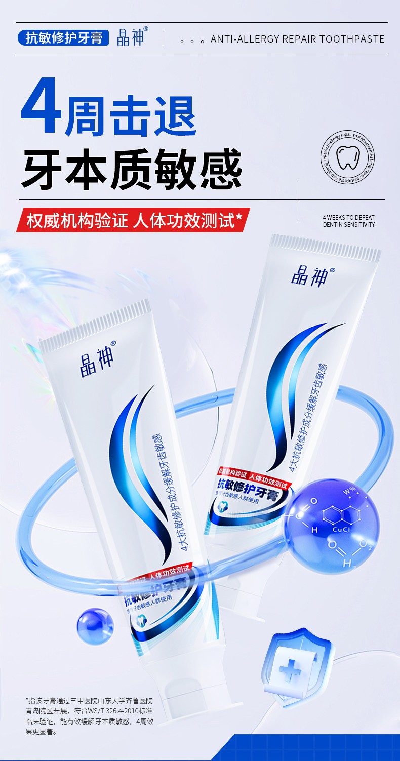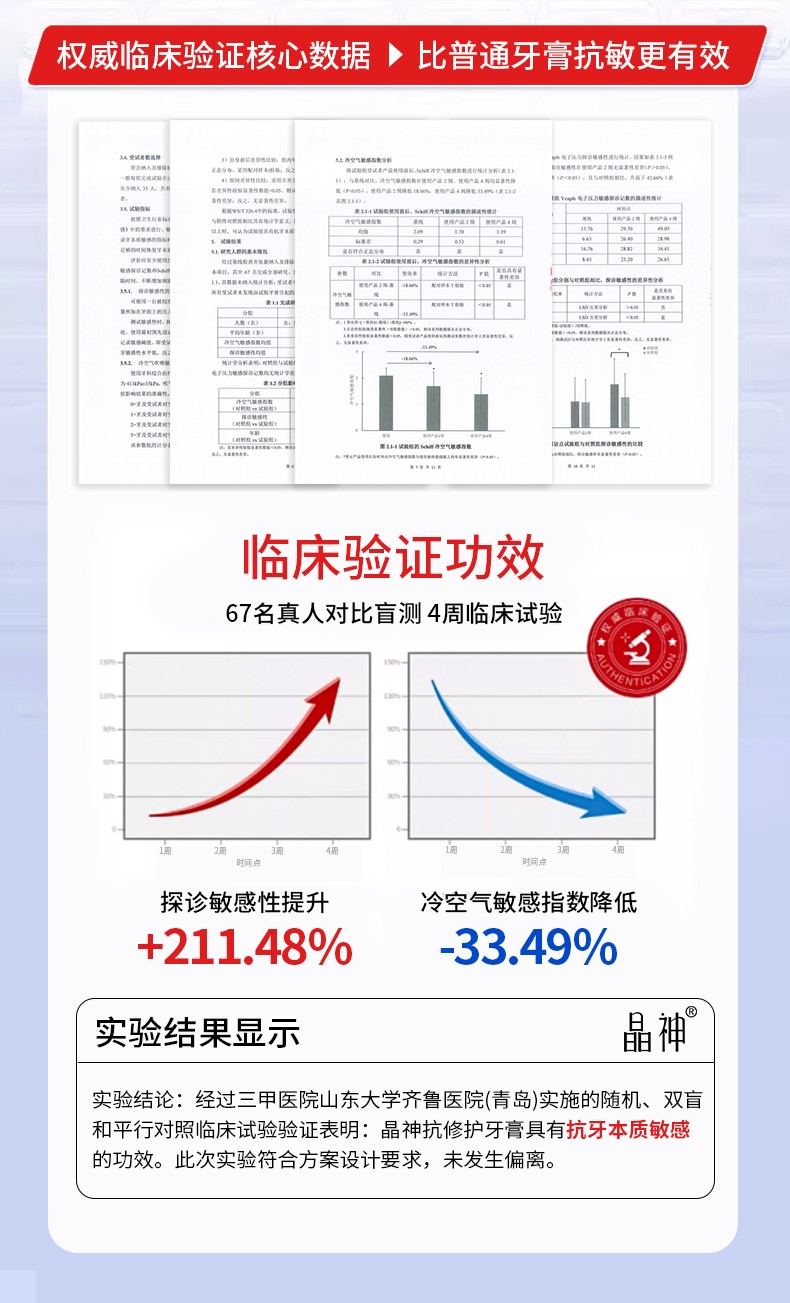 長春晶神抗敏修護(hù)牙膏:三甲醫(yī)院臨床驗(yàn)證:4 周擊退牙本質(zhì)敏感!